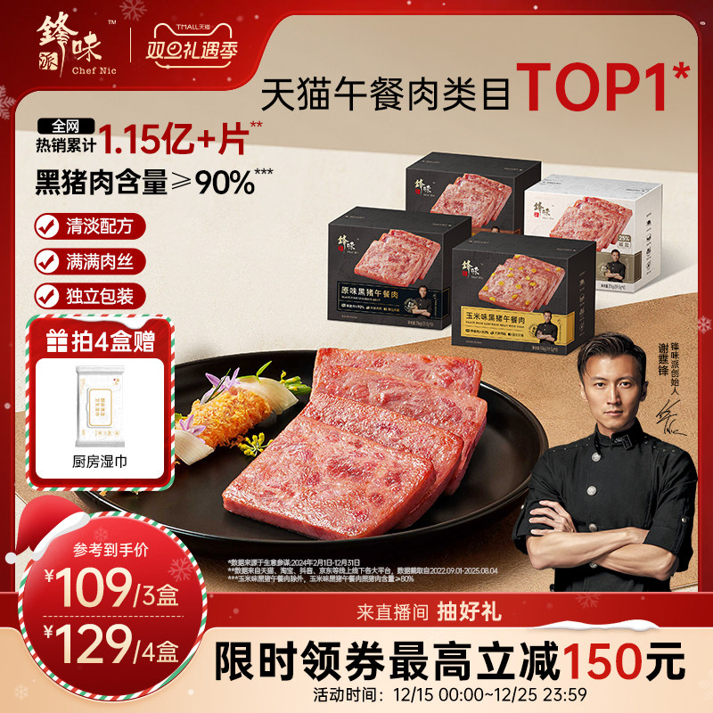 锋味派官方黑猪午餐肉罐头三明治专用火腿午餐肉独立包装儿童早餐