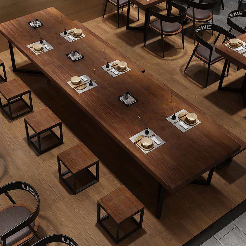 工业风大型饭店餐桌椅组合实木长方形铁艺简约面馆酒店商用长条桌