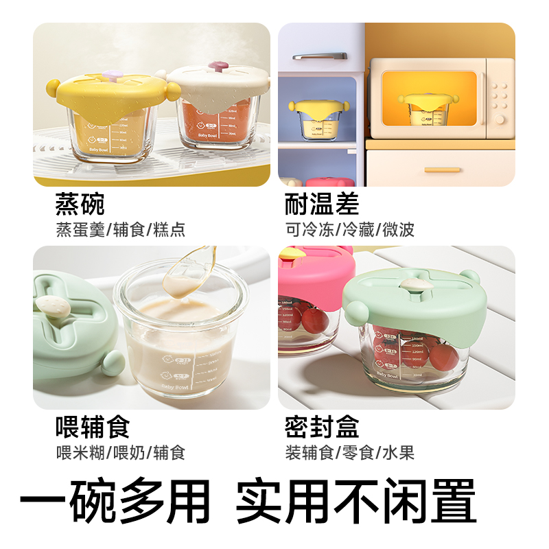 如山宝宝辅食盒2个到手18.1,单个9元,玻璃可蒸煮蛋羹碗保鲜储存工具杯模婴儿专用辅食碗