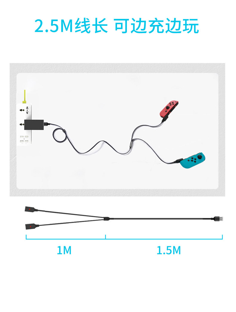 推荐理由:HONCAM switch joycon手柄充电线充电器适用于ns任天堂switcholed joycon左右手柄充电延长线2.5米底座
