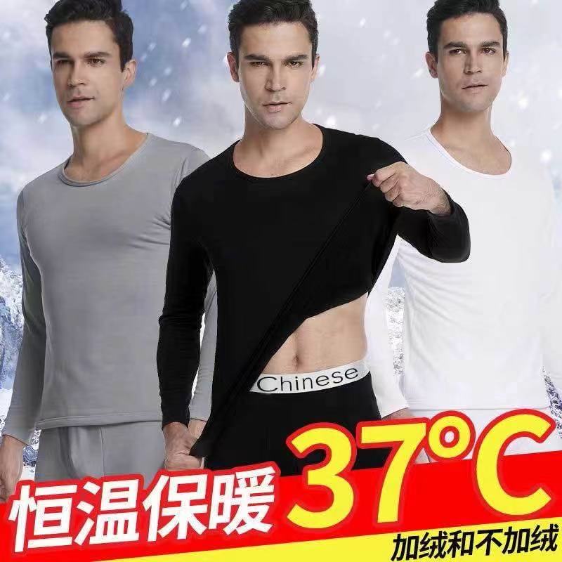 男士秋衣秋裤套装青年薄款打底修身圆领毛衫秋冬季男保暖内衣加绒