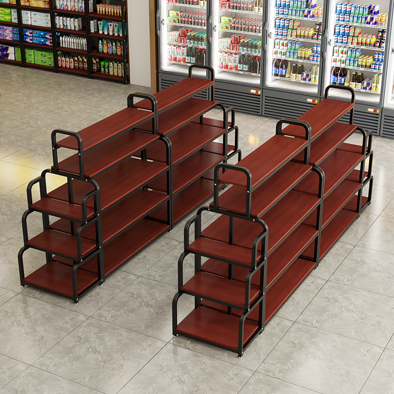 超市双面货架中岛柜便利店架子鞋店展示架母婴店陈列架化妆品展柜