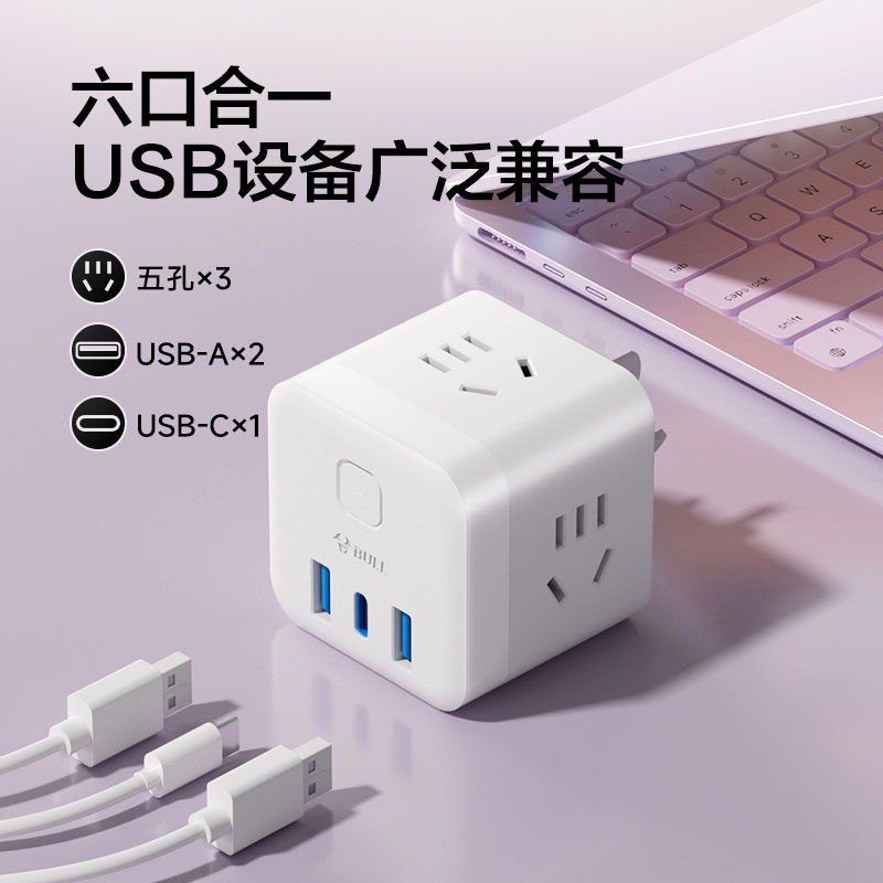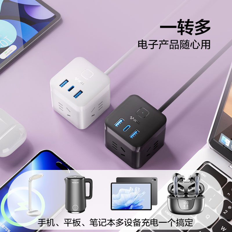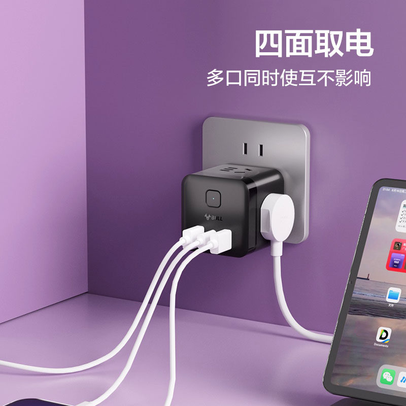 公牛魔方插座转换器无线排插多孔多功能扩展快充一转三插头拓展器