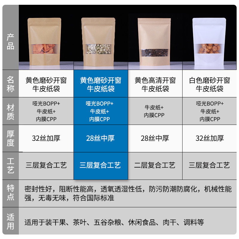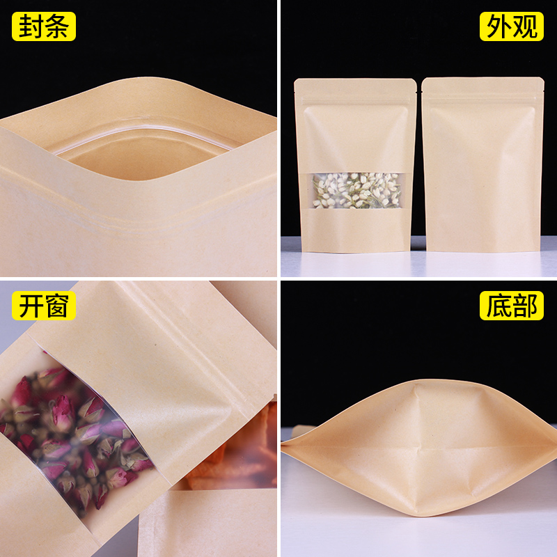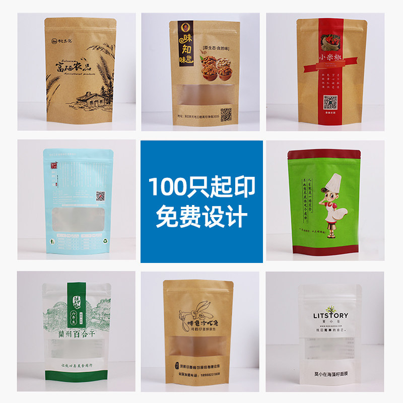 推荐理由:磨砂开窗牛皮纸袋自立自封袋食品袋干果茶叶密封包装袋子定制印刷