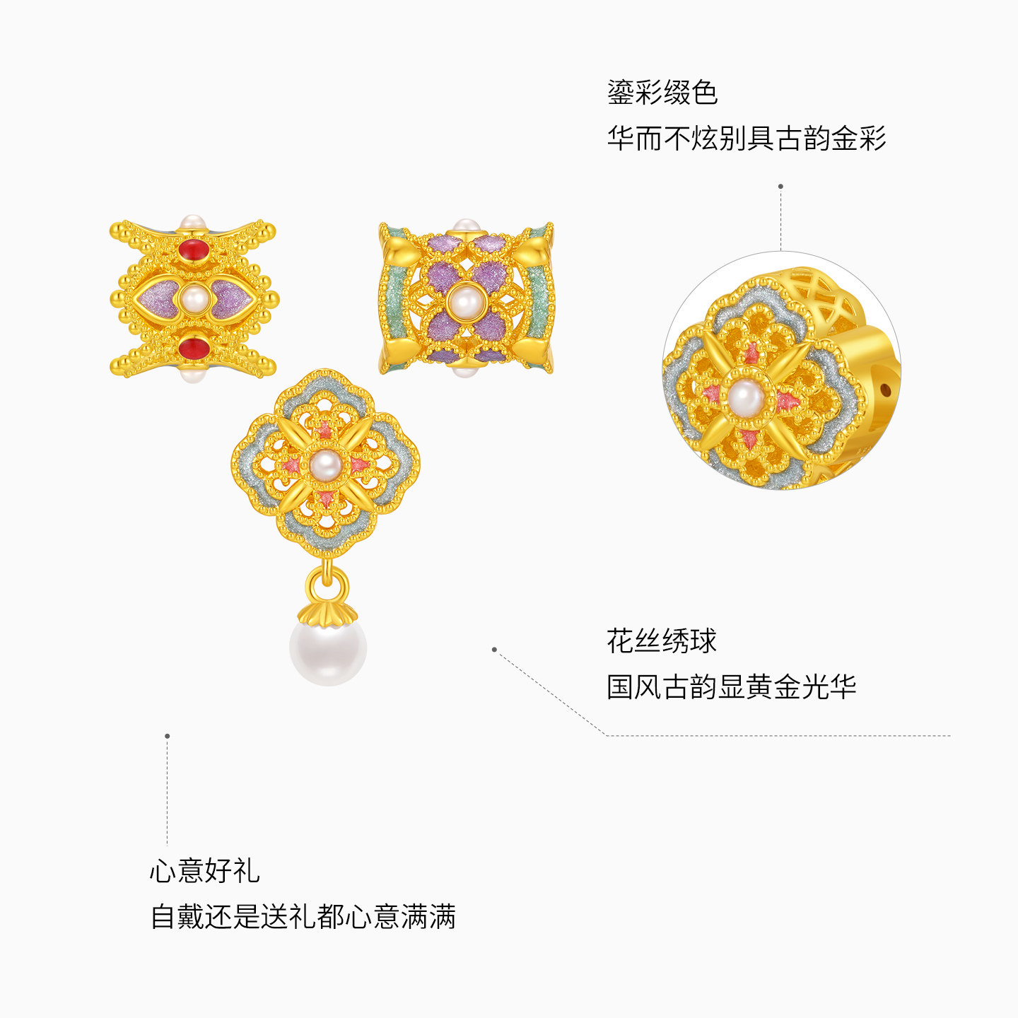 推荐理由:潮宏基花丝绣球黄金串珠足金转运珠吊坠硬金珍珠镶嵌新中式礼物