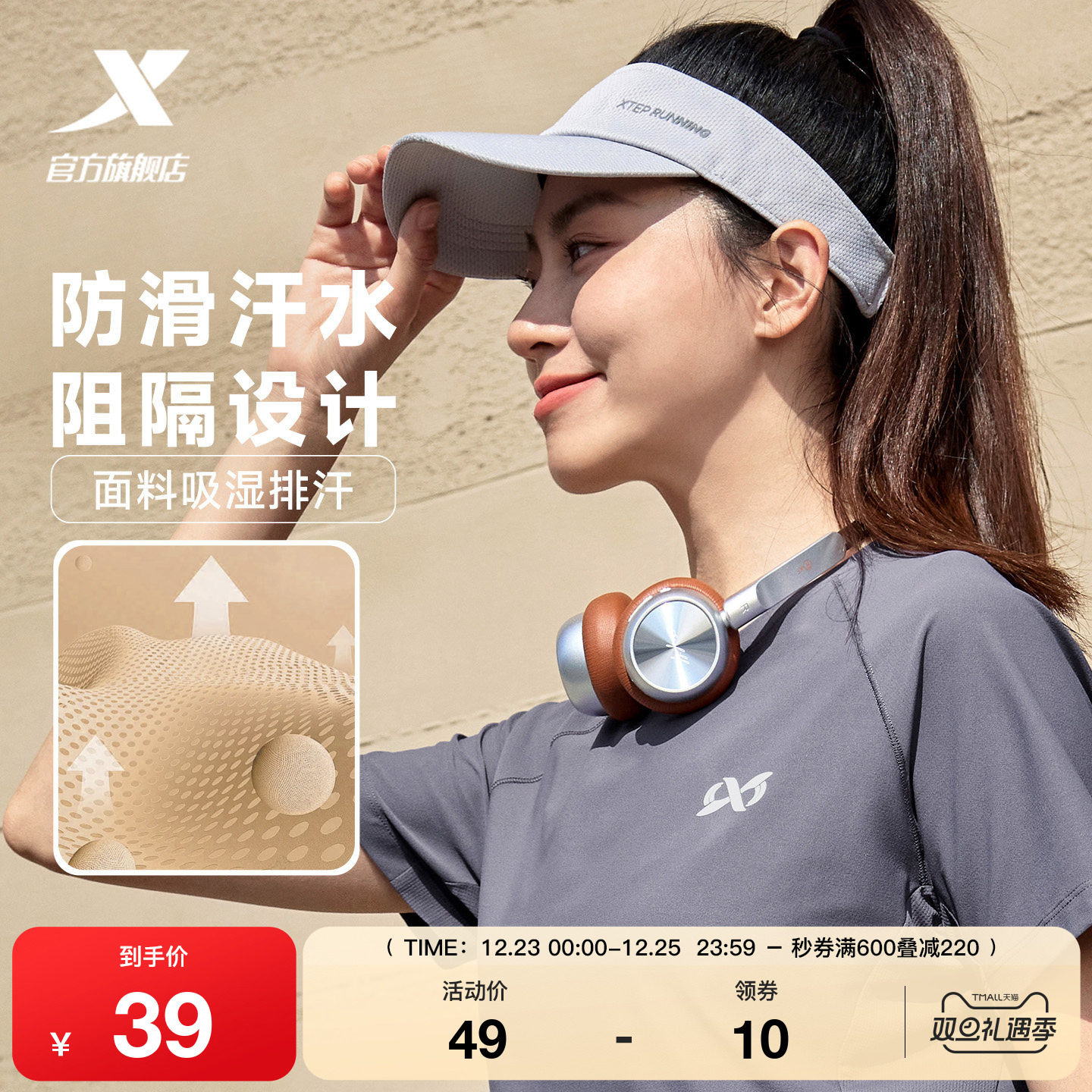 推荐理由:特步空顶帽运动跑步帽男2025秋季遮阳帽透气情侣空顶帽网球遮脸女