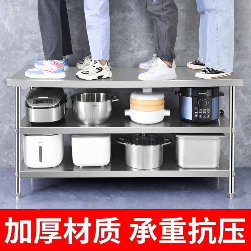 推荐理由:工作台不锈钢加厚双层厨房专用切菜剁骨饭店操作台商用打荷打包台
