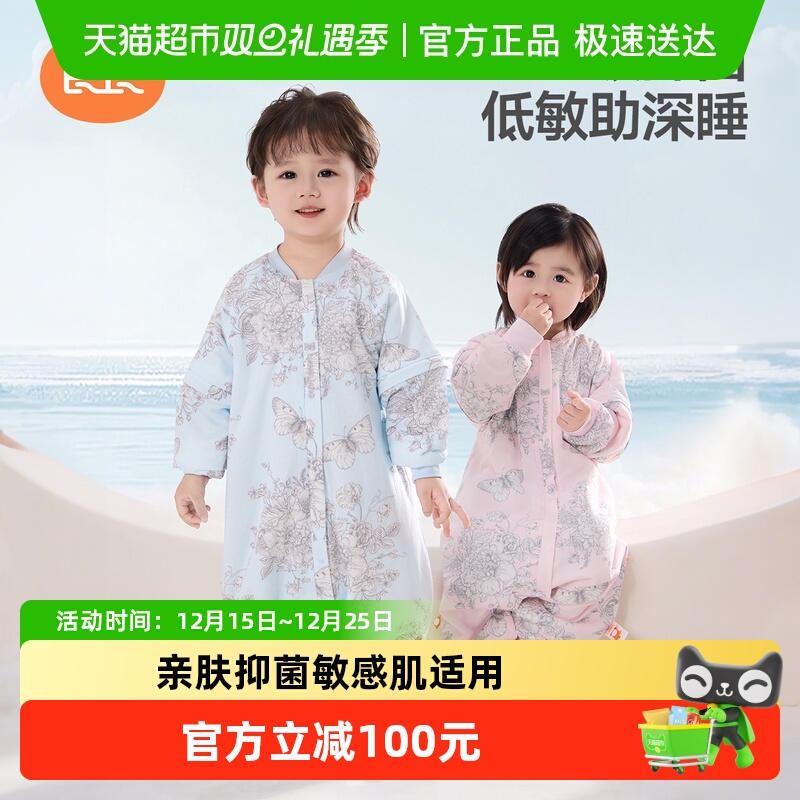 良良婴儿分腿春秋纯棉睡袋新生宝宝薄夹棉儿童低敏抗静电防踢被
