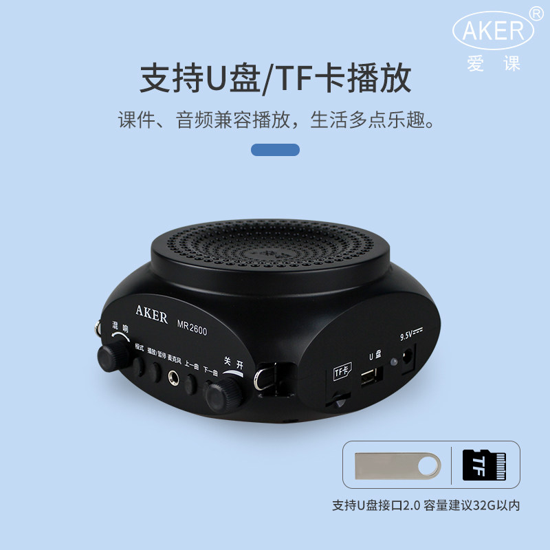 AKER/爱课 MR2600多功能无线扩音器大功率插卡蓝牙音箱2500升级版
