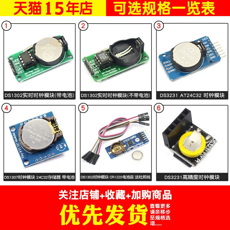 DS1302/3231/1307 PCF8563实时时钟模块时间掉电走时存储计时带电