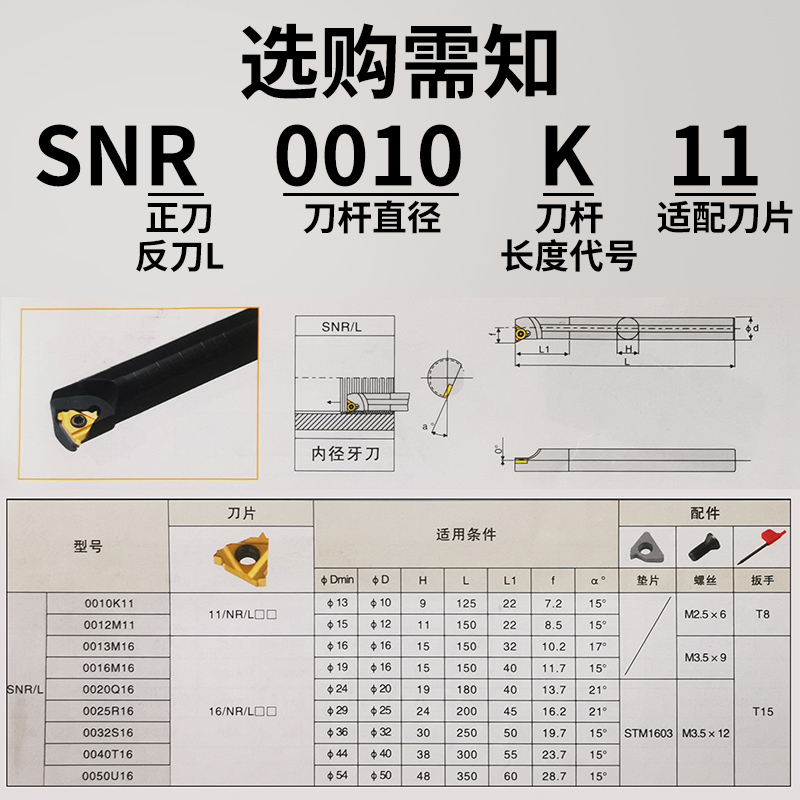 推荐理由:内螺纹刀杆数控螺纹车刀/车刀杆SNR0016Q16/0020R16/K11车床刀具