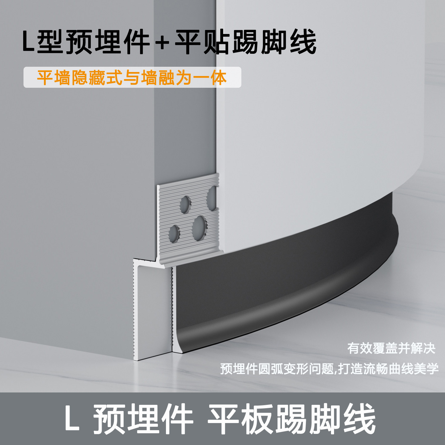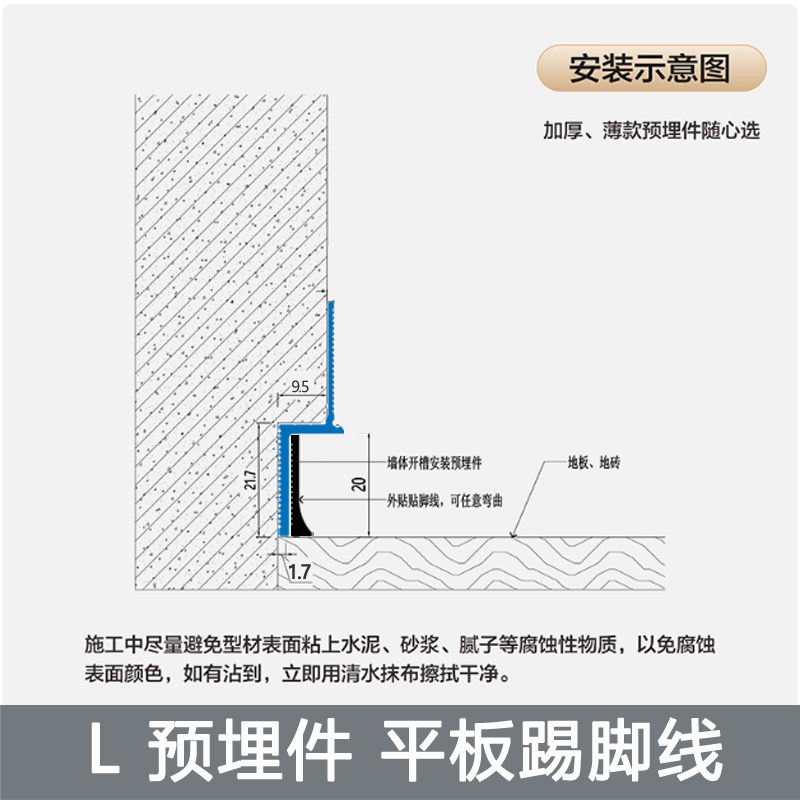 推荐理由:铝合金预埋内嵌踢脚线金属贴脚线嵌入式隐形分体式批灰款地脚线