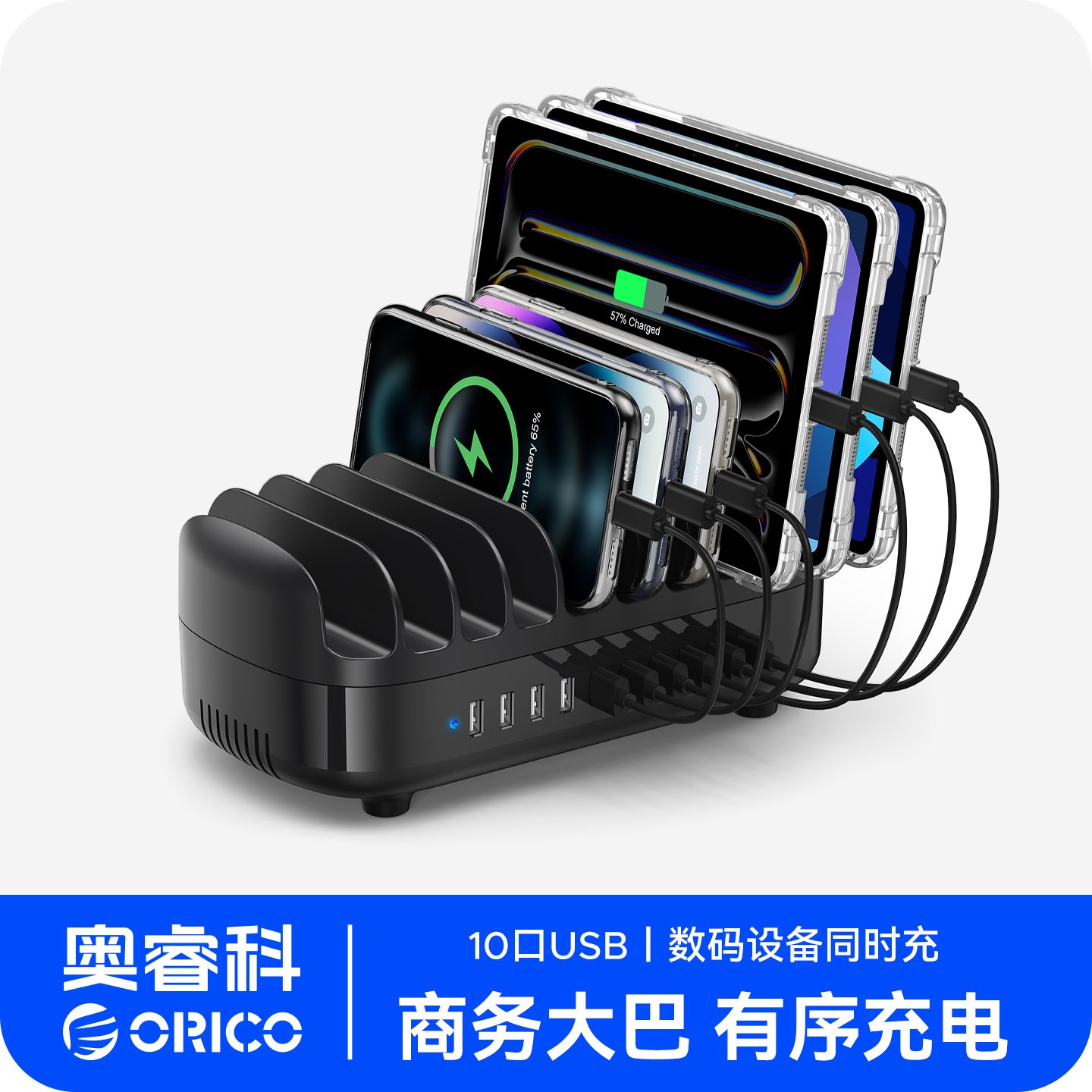 Orico/奥睿科 多接口usb手机平板通用充电器巴士兼容5v手游工作室10口充电站大功率USB快充智能识别设备