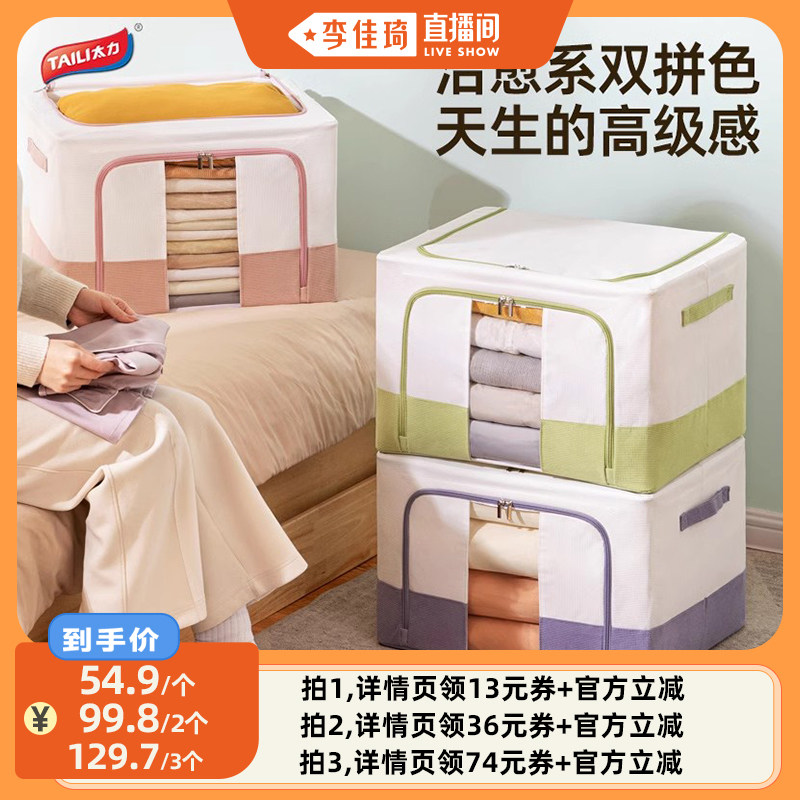 【李佳琦直播间】太力衣服收纳箱华夫格百纳箱储物箱