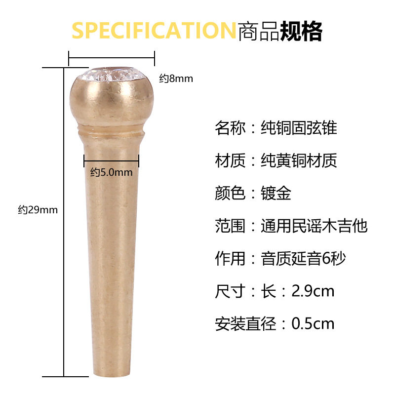 推荐理由:纯铜瓖钻吉他弦钉民谣吉他固弦锥木吉他黄铜弦柱延长延音弦钉配件