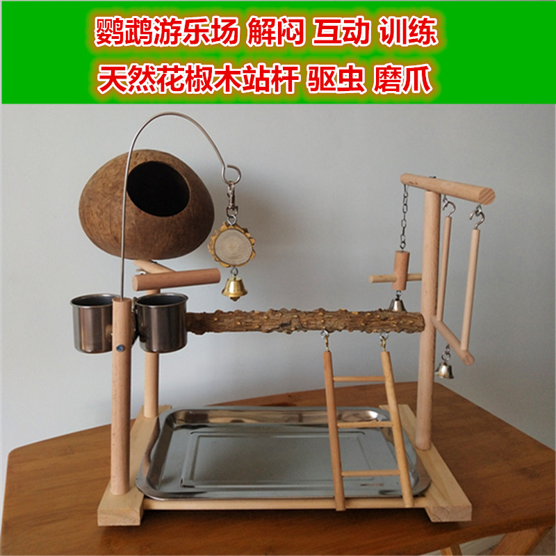 鸟站架花椒木杆笼椰壳窝玩具秋千游乐场牡丹鹦鹉虎皮站架互动训练