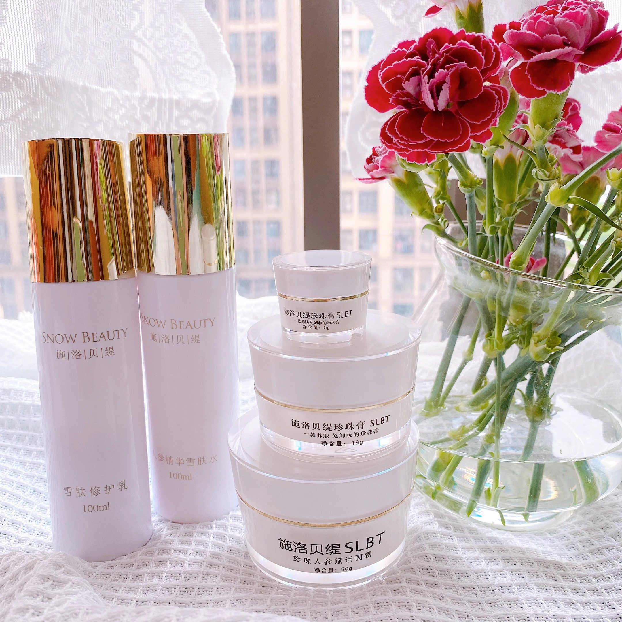 施洛贝缇珍珠膏系列人参珍珠面膜面霜养肤水修护乳洁面护肤蜜粉