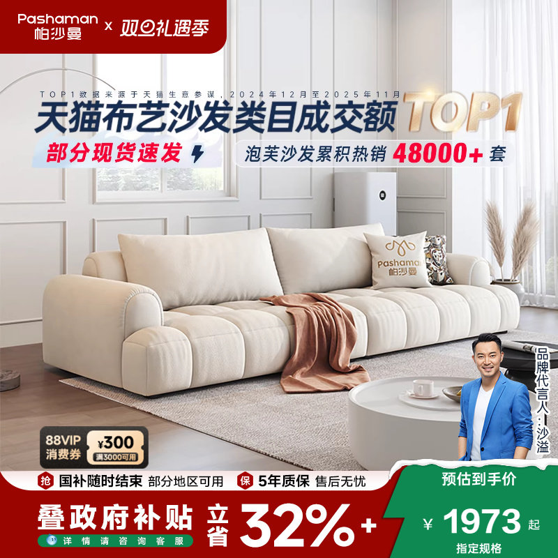 政府补贴帕沙曼泡芙棉花糖布艺沙发猫抓布奶油风客厅简约云朵沙发
