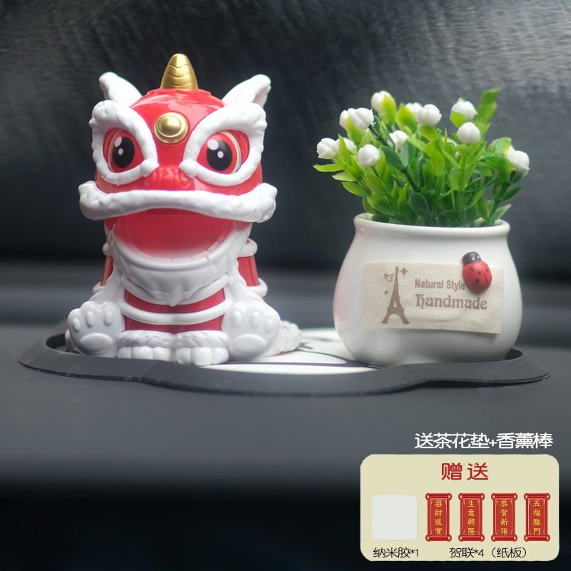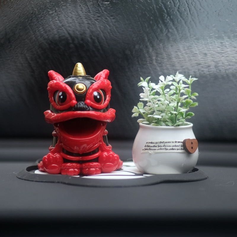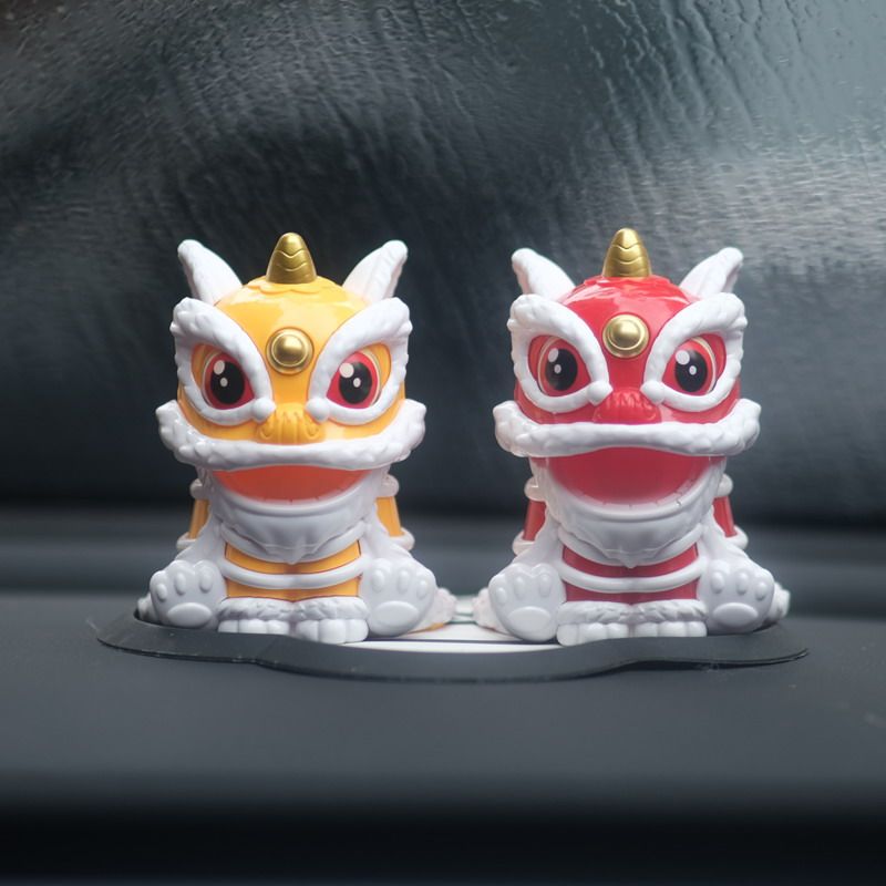 启泽太阳能醒狮汽车摇头摆件2025新款国潮舞狮前台车载中控台