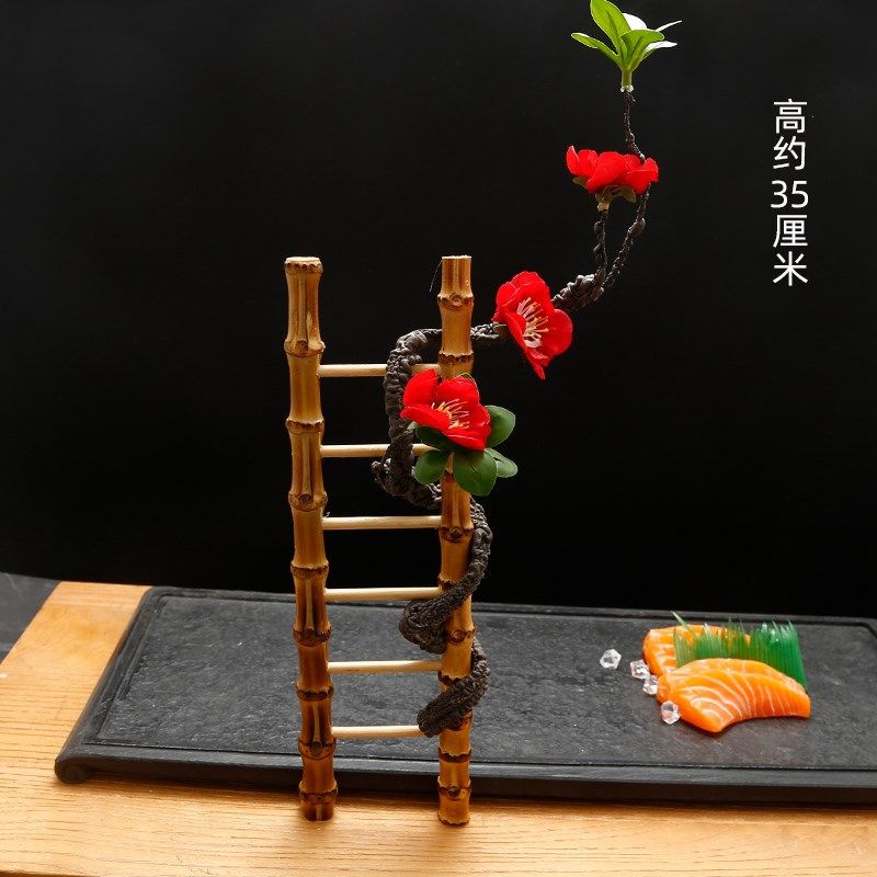 酒店刺身摆盘装饰花草意境冷菜新款盘饰点缀餐饮竹梯日式小摆件