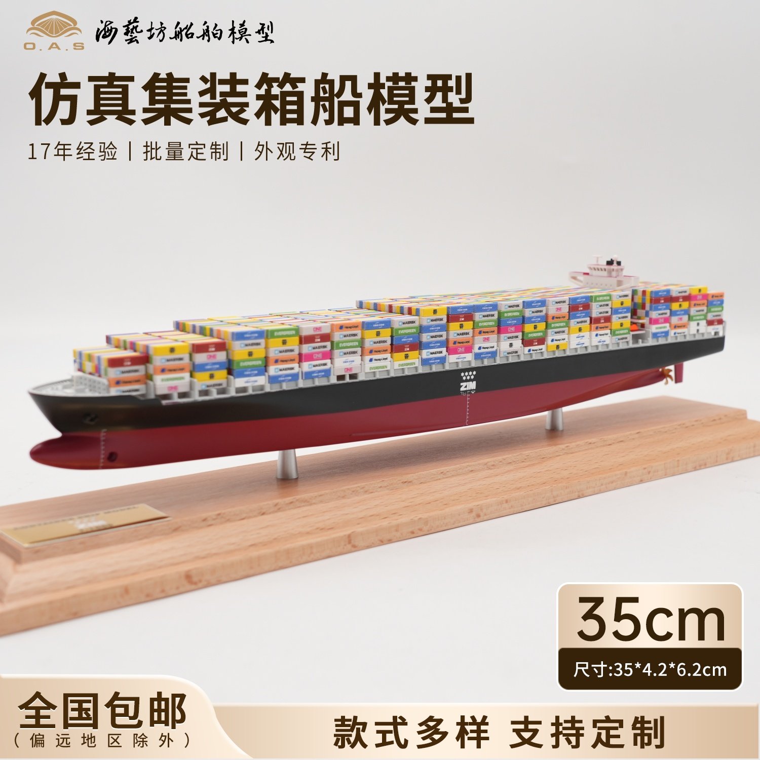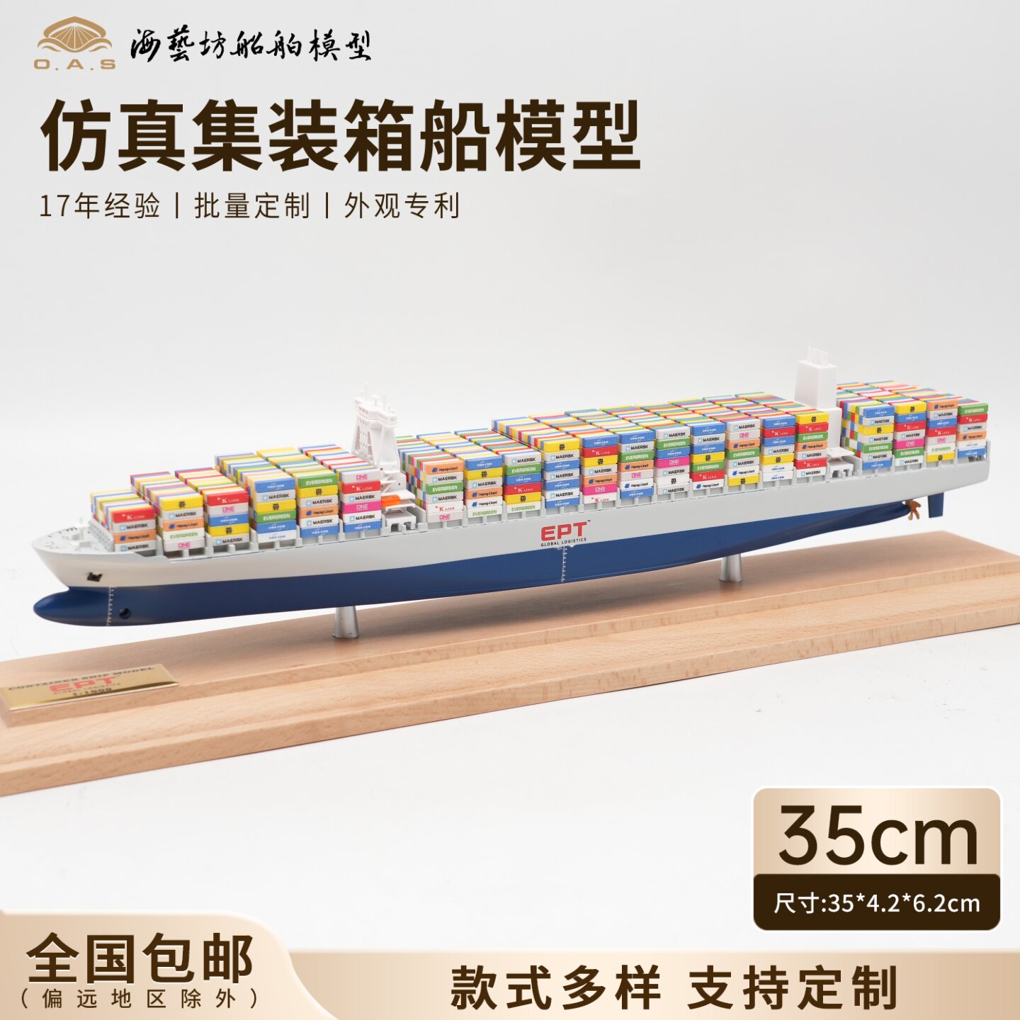 35cm navis集装箱船模定做货柜船模礼品海艺坊仿真船模工厂