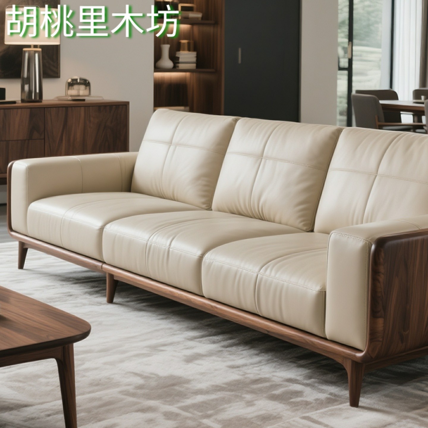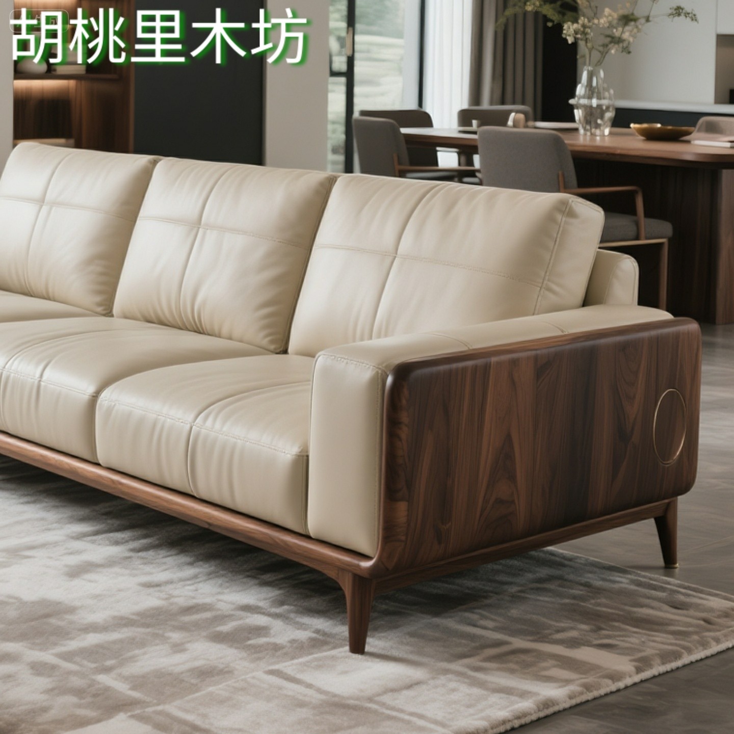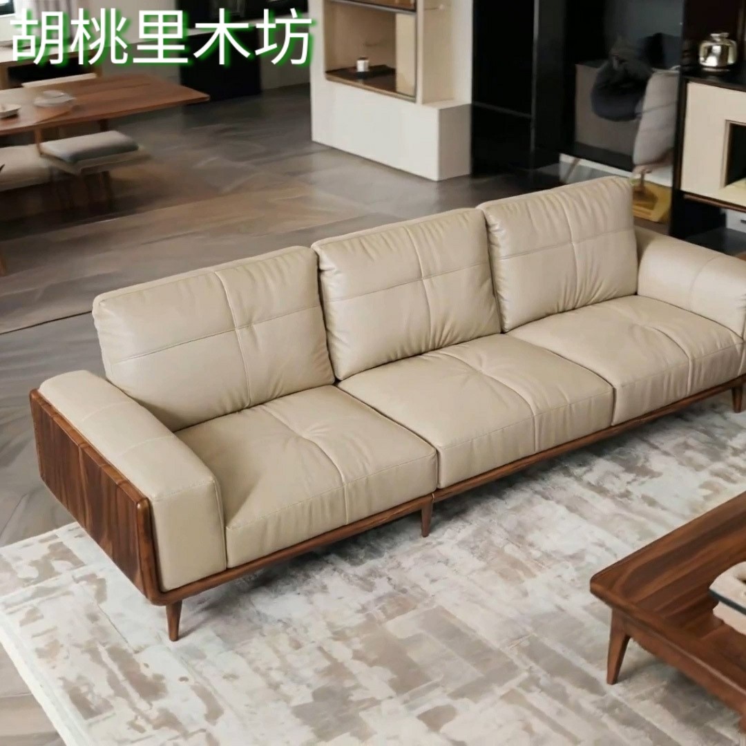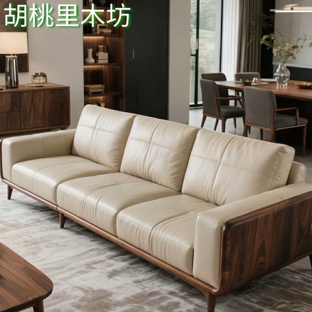 推荐理由:新中式黑胡桃木实木沙发直排奶油风酒店民宿办公室样板房真皮家具