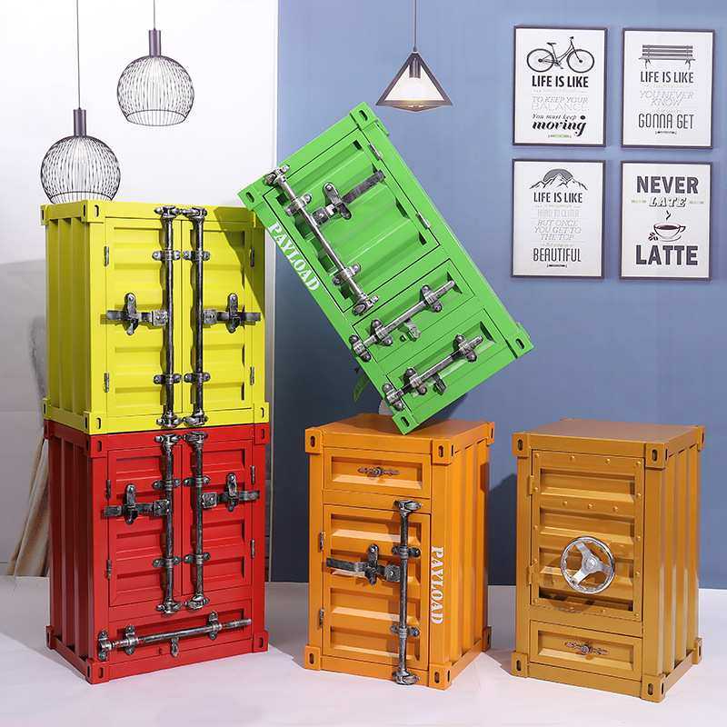 工业风铁艺床头柜储物柜 创意小型做旧集装箱柜子床边复古收纳柜