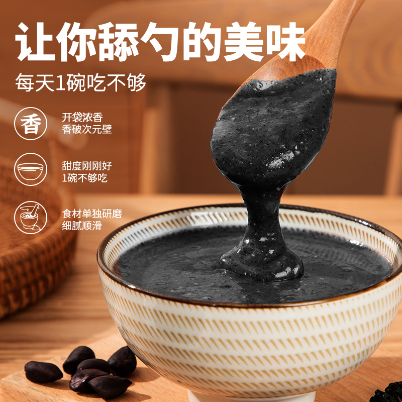 传统手磨,原香原味,健康粗粮,健康营养代餐粉!独立小包装,即冲即饮,芝麻香浓郁!添加奇亚籽、黑桑葚等!代替早餐或晚餐、养生还减肥!