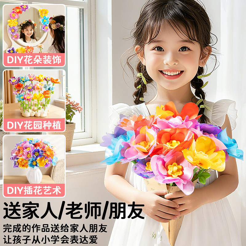 2025新款DIY花艺机儿童女孩过家家玩具手工仿真花束制材料包礼物