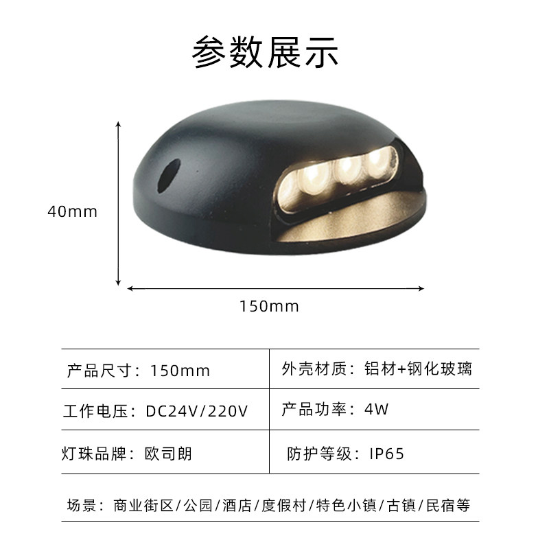 推荐理由:LED步道灯户外防水龟背灯踏步台阶楼道免开孔侧面发光透光埋地灯