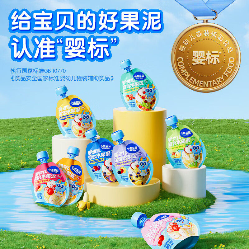 推荐理由:小鹿蓝蓝婴幼儿混合水果泥108g宝宝婴标小零食多口味混合水果泥