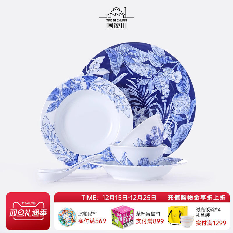 陶溪川景德镇陶瓷深林物语青花瓷家用中式碗盘碟乔迁新居餐具套装