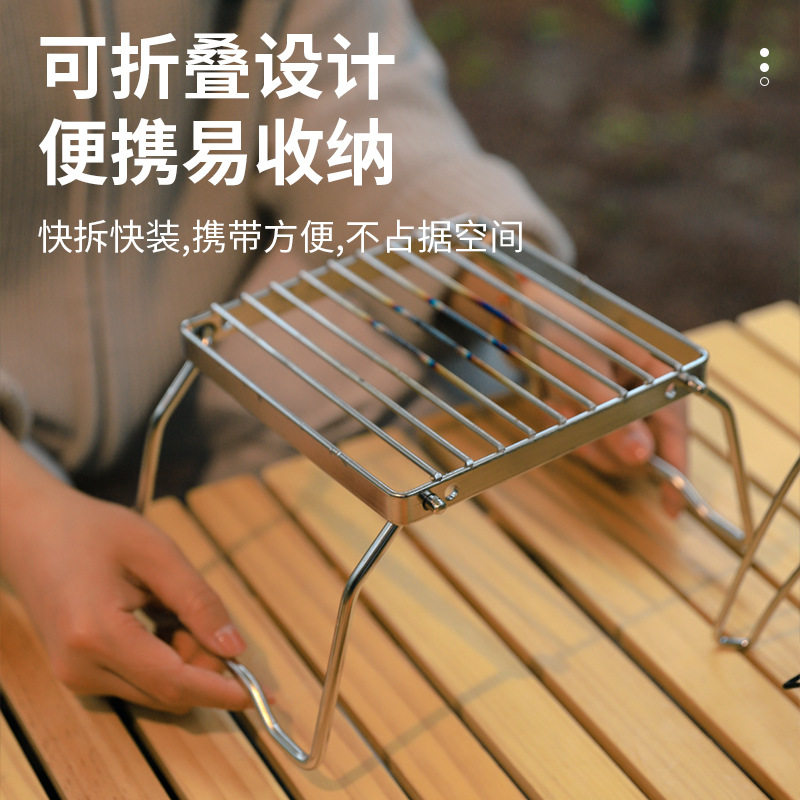 户外便携迷你折叠不锈钢炉头支架 烧烤架套锅架烤盘支架烤网小号
