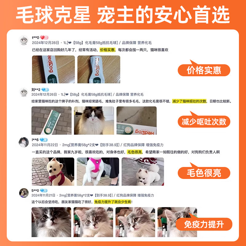 推荐理由:reddog红狗化毛膏猫咪专用排毛化毛美毛膏红狗营养膏猫咪专用120g