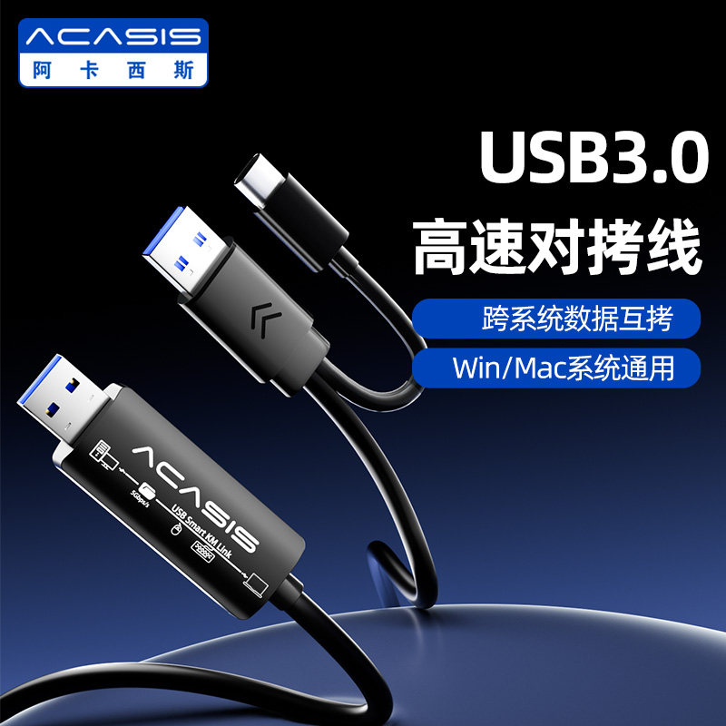阿卡西斯USB3.0对拷线电脑数据文件拷贝互传共用鼠标键盘笔记本共享数据线传输线公对公2025年新款USB互拷线