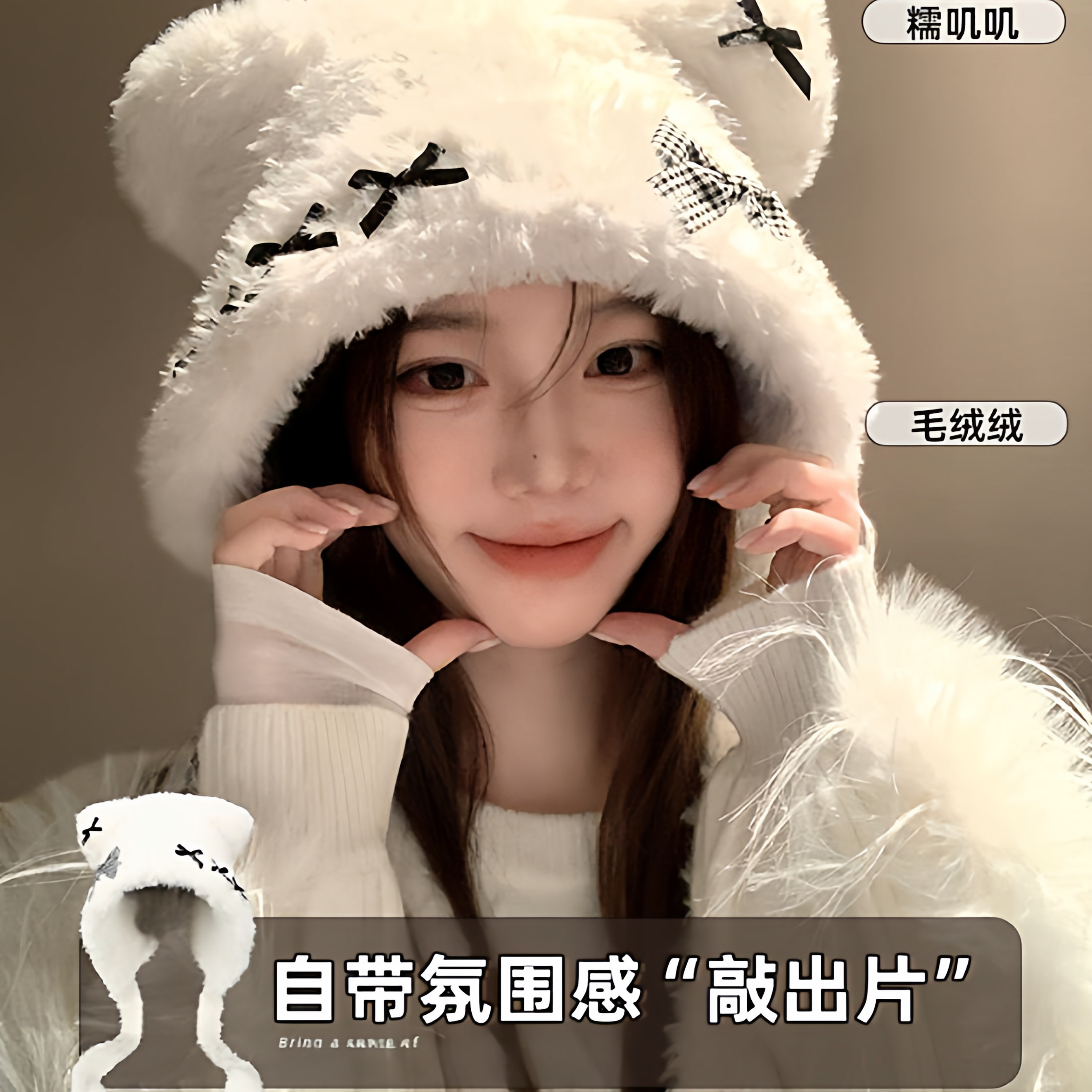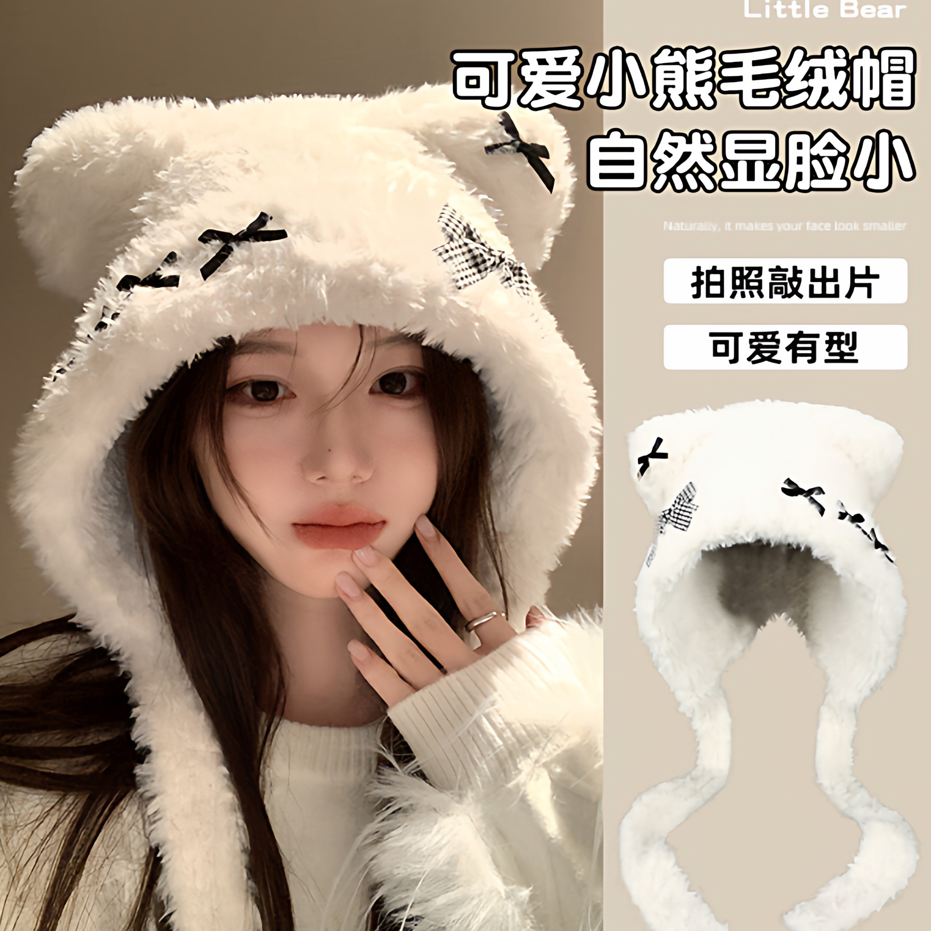 推荐理由:小熊蝴蝶结帽子女秋冬季2025新款可爱保暖