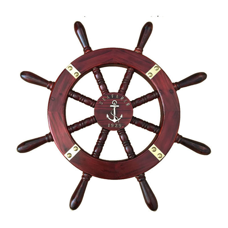 老船舵复古领航舵酒吧餐厅装饰实木工艺品美式地中海方向盘墙壁挂