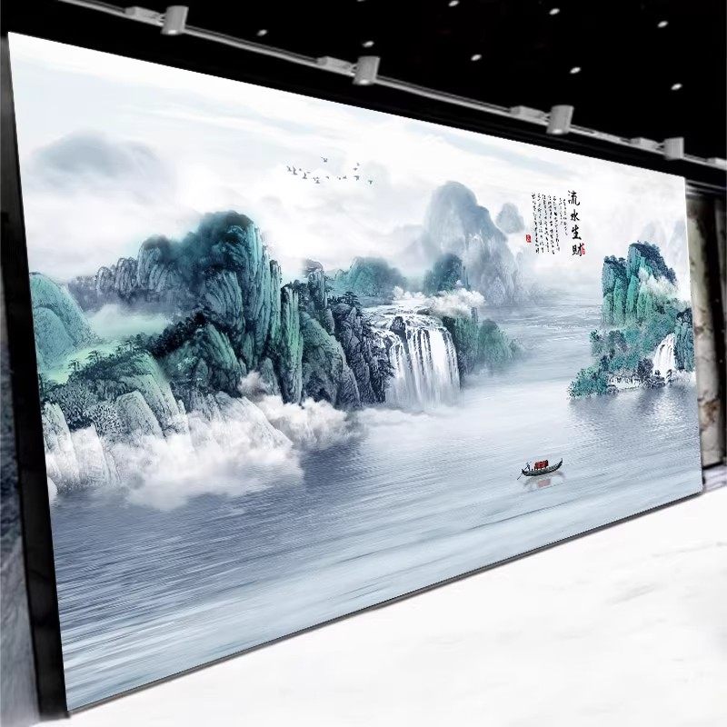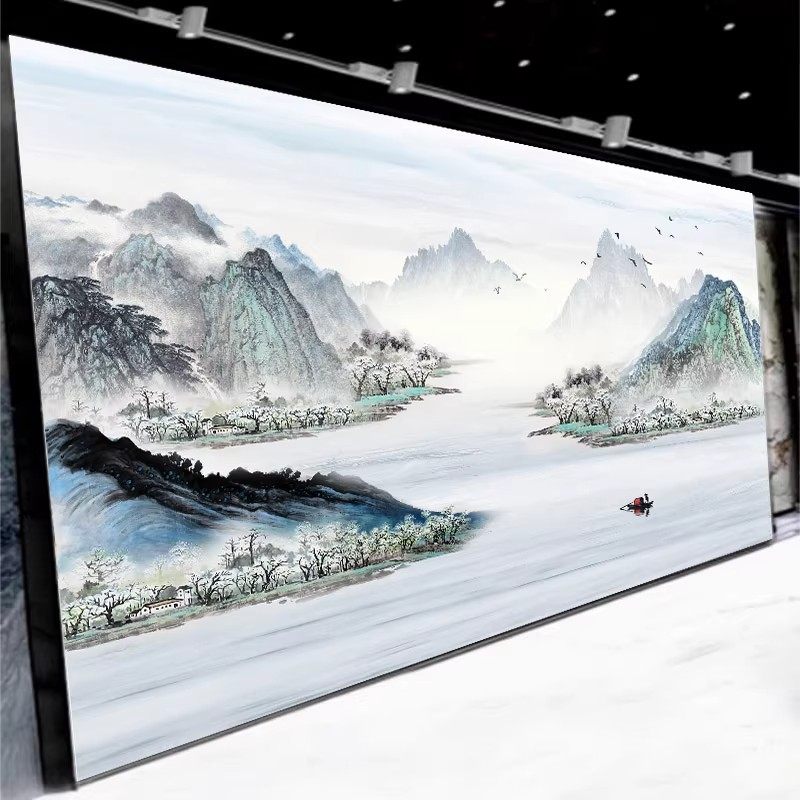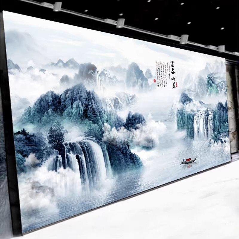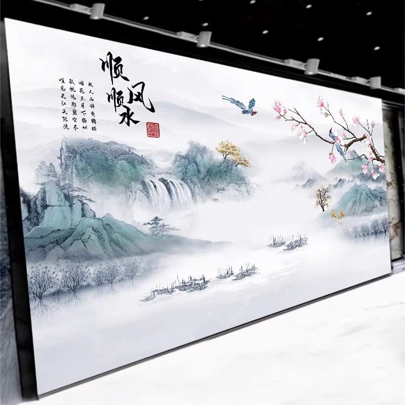 新中式竹木纤维电视背景墙集成墙板水墨山水画碳晶板影视墙护墙板