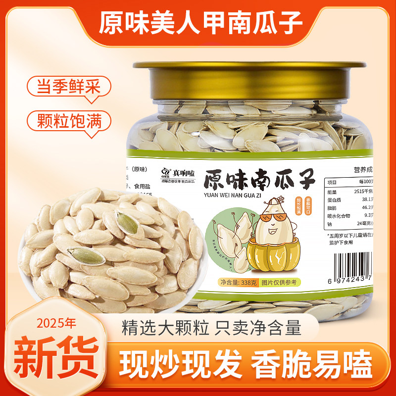 推荐理由:礼金+金币到手13.9元,粒大皮薄,饱满仁香!传统工艺炒制,诱出南瓜子的香脆与回甘,口感香醇,久吃不腻~