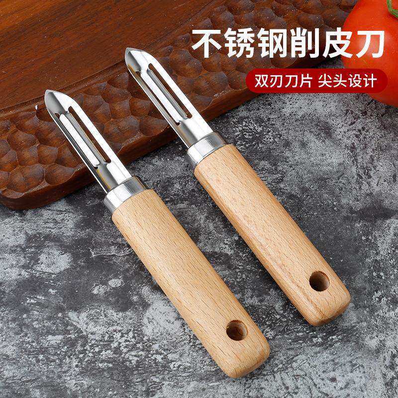 木柄不锈钢削皮器家用直型一字果蔬瓜刨木柄削皮刀厨房小工具