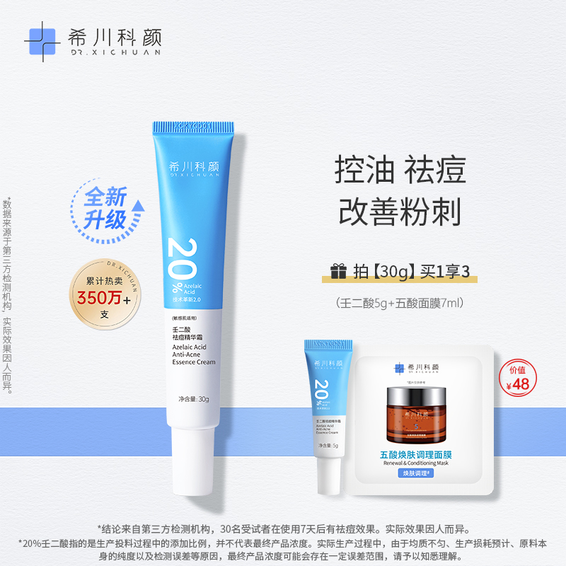 【全新升级2.0】希川科颜20%壬二酸祛痘精华霜去黑头痘痘控油修护