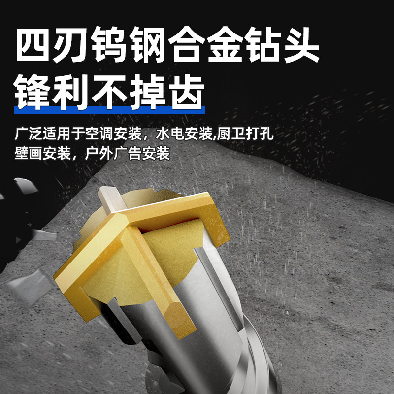 推荐理由:蓝胜十字冲击钻高硬度电锤钻头圆方柄钢筋混凝土打孔专用6mm电锺