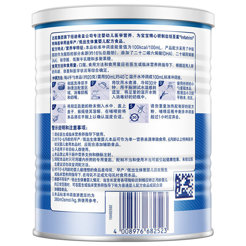 推荐理由:纽荃星早产儿/低体重儿婴儿特殊配方奶粉400g纽迪希亚官方正品