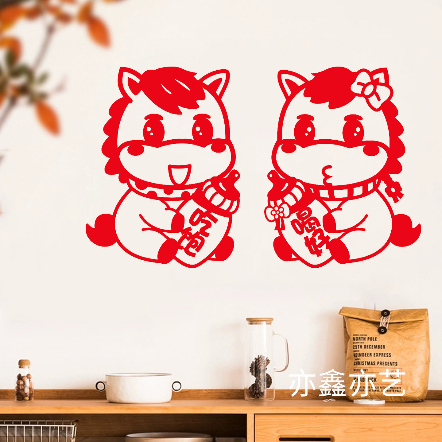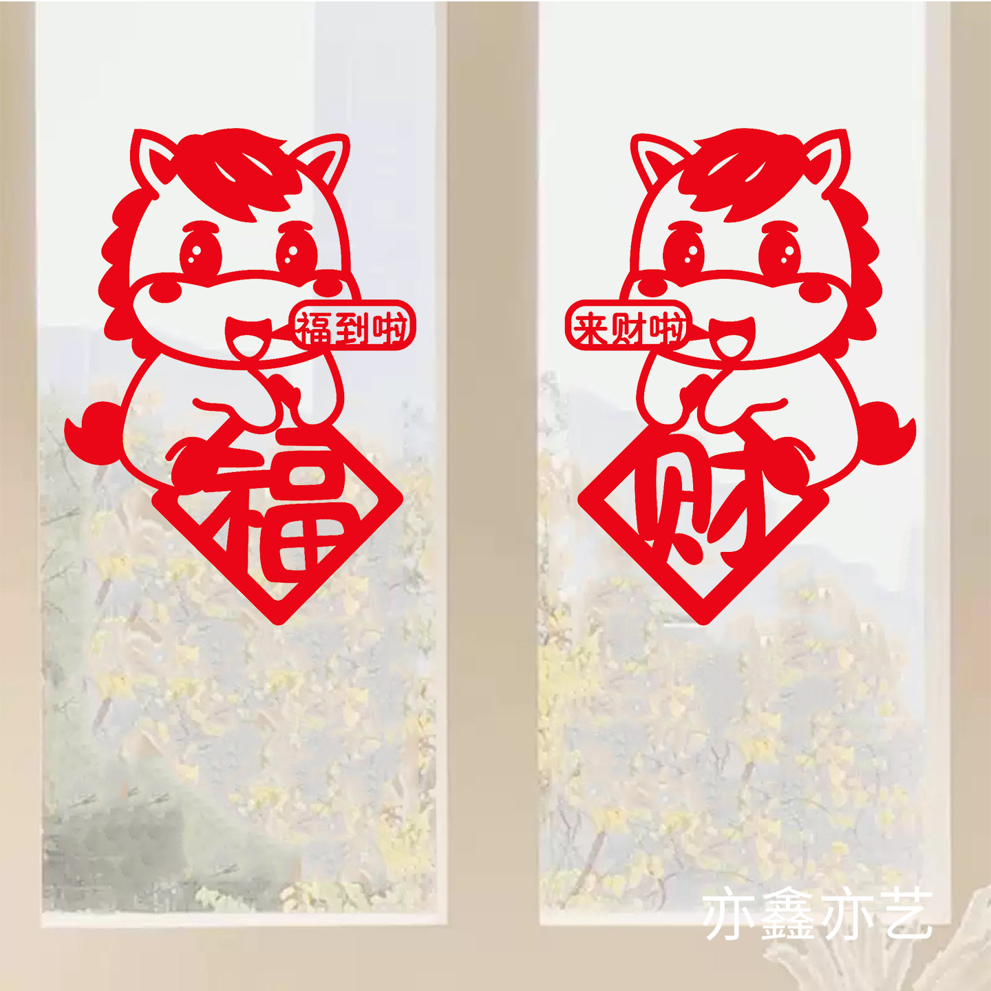 推荐理由:绒布福字门贴马年2026卡通贴纸装饰大门贴纸新年窗花新款玻璃贴