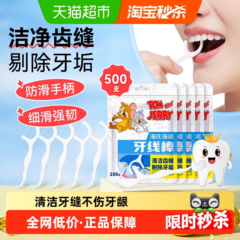 海氏海诺【猫和老鼠联名】食品级牙线棒圆线剔牙签清洁超细量贩装