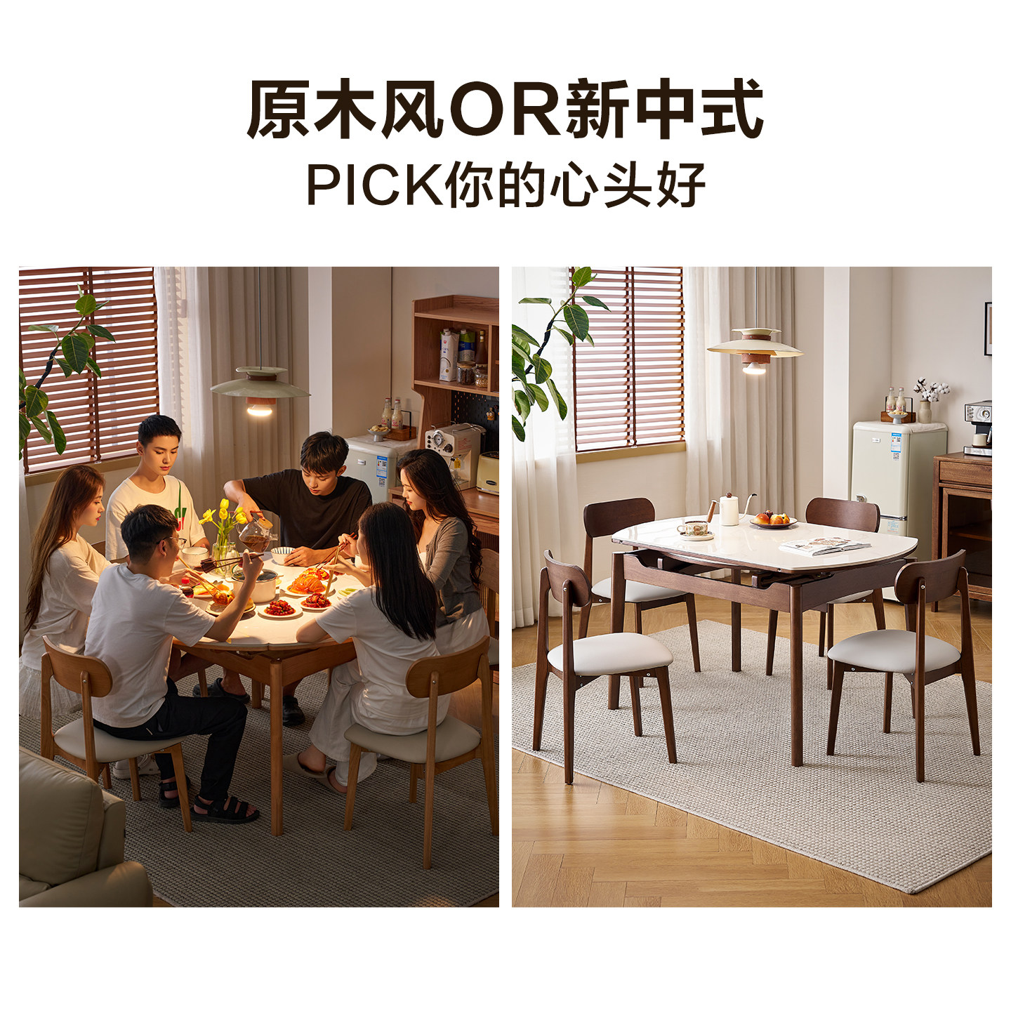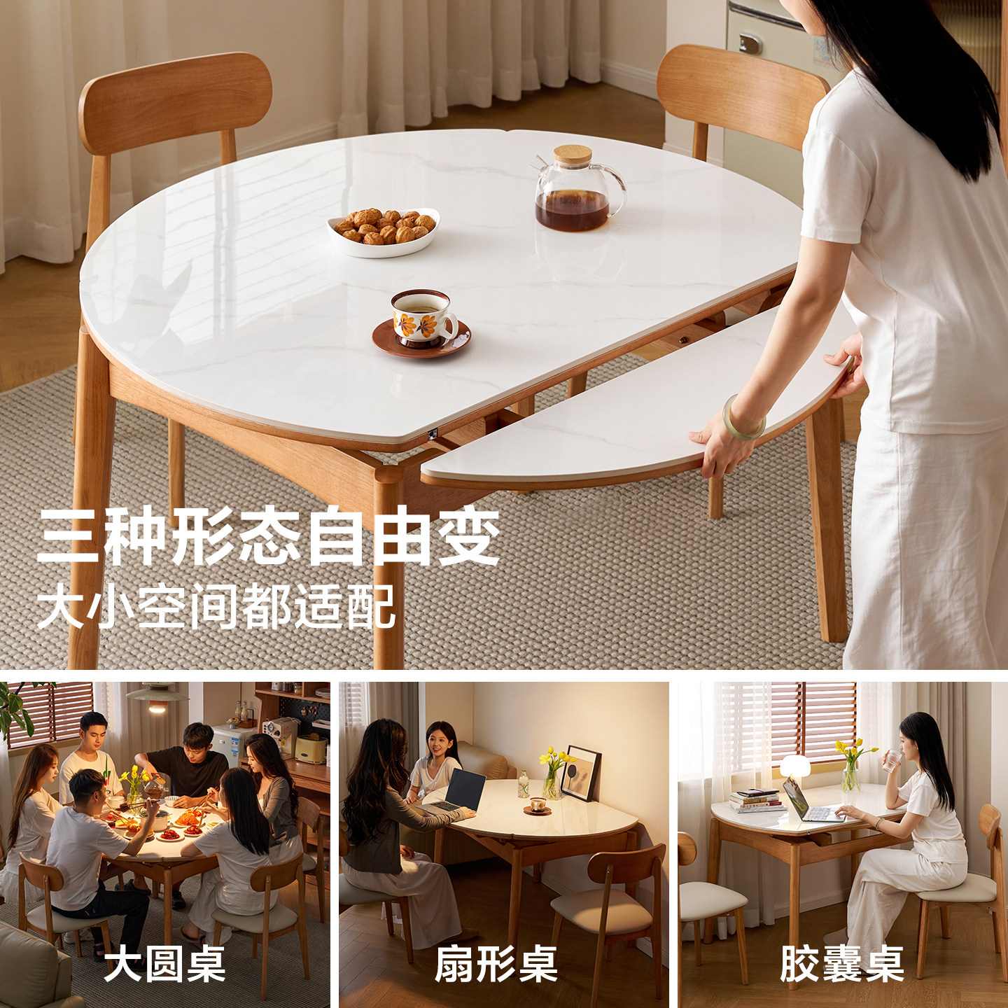 全友家居北欧岩板餐桌可变圆桌客厅家用小户型可伸缩折叠餐桌椅