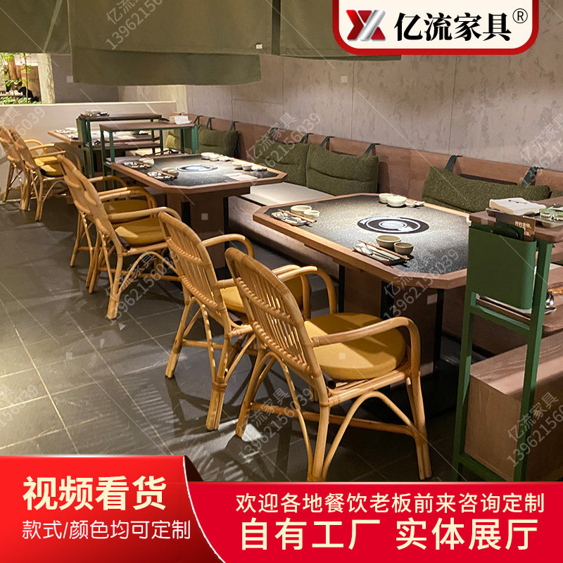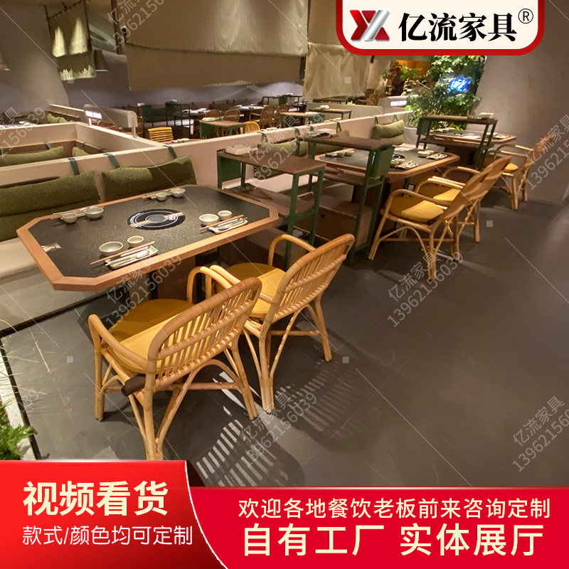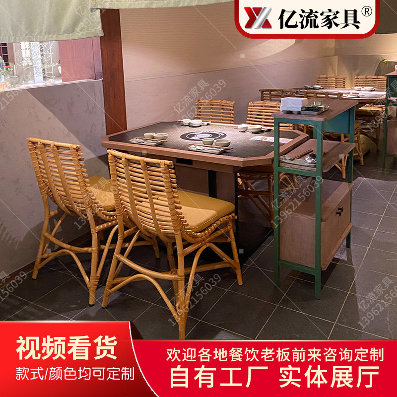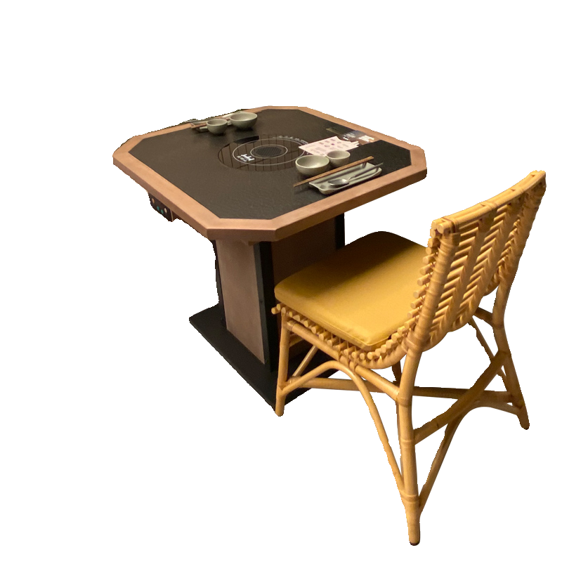 推荐理由:火烧石烧烤桌实木包边嵌入式电磁炉火锅桌无烟净化下排烟烤肉桌椅