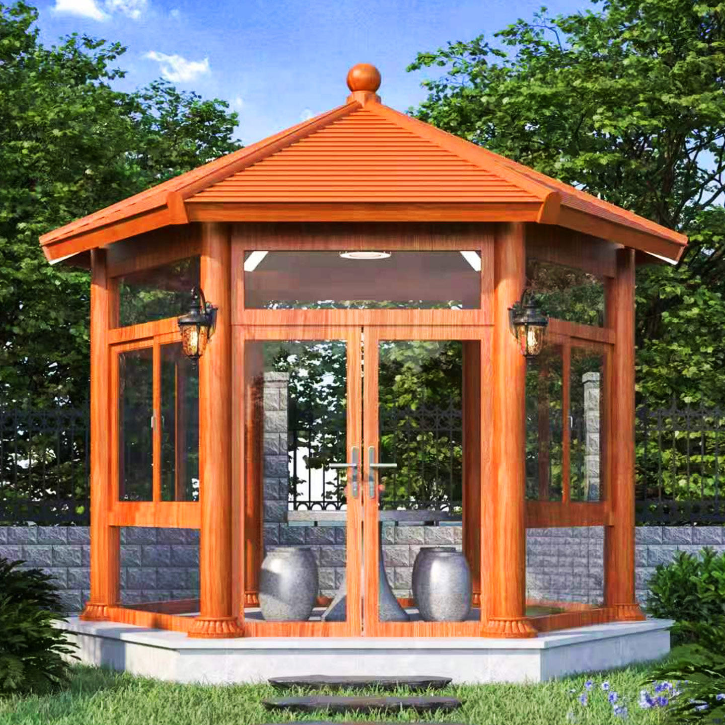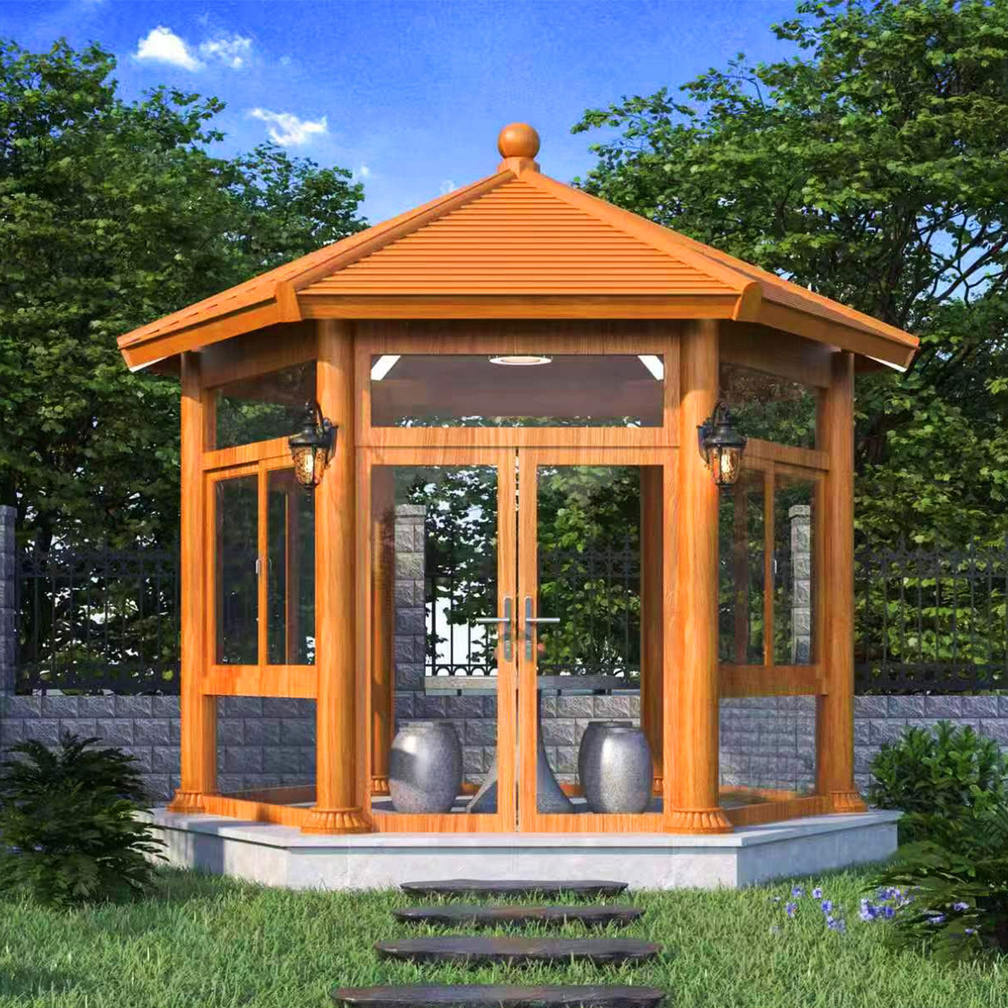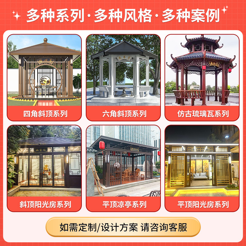 铝合金阳光房别墅院子亭子农村小院封闭茶室六角凉亭展厅已装样板