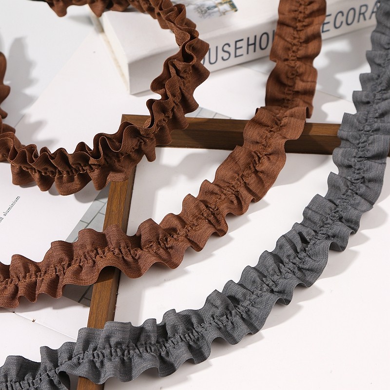 棉麻暗纹皱褶裙边丝带娃衣服饰荷叶边DIY发饰蝴蝶结花边辅料织带