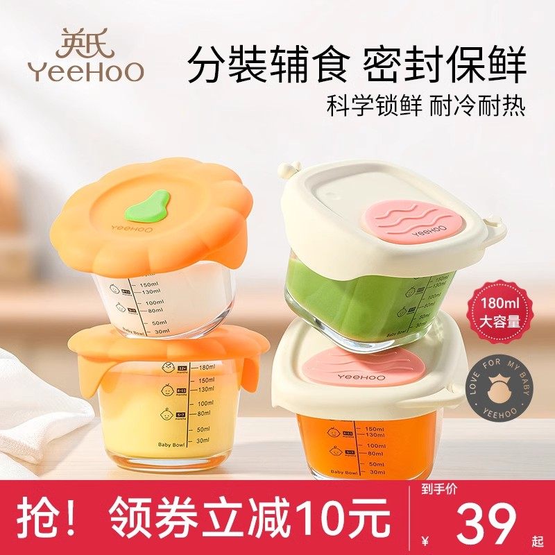 英氏辅食盒玻璃可蒸煮蛋碗婴儿专用辅食碗宝宝保鲜储存盒全套玻璃